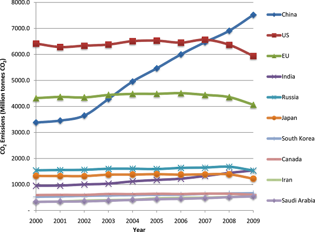 World's fossil-fuel CO2 emissions in 2009: China is No. 1 three years in a row